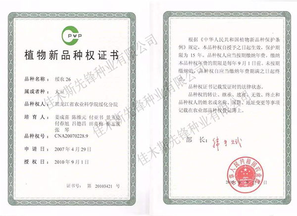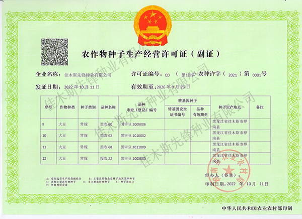 走進(jìn)我們 COME INTO US 您現(xiàn)在的位置:網(wǎng)站首頁 > 走進(jìn)我們 >資質(zhì)榮譽 公司簡介 企業(yè)文化 領(lǐng)導(dǎo)致辭 資質(zhì)榮譽 農(nóng)作物種子生產(chǎn)經(jīng)營許可證(副證) 黑農(nóng)48省農(nóng)作物品種合格證書 黑農(nóng)48植物新品種權(quán)證書 綏農(nóng)26植物新品種權(quán)證書 東生51審定證書 綏農(nóng)53審定證書 共30條記錄 當(dāng)前為第2頁/共5頁上一頁12345下一頁